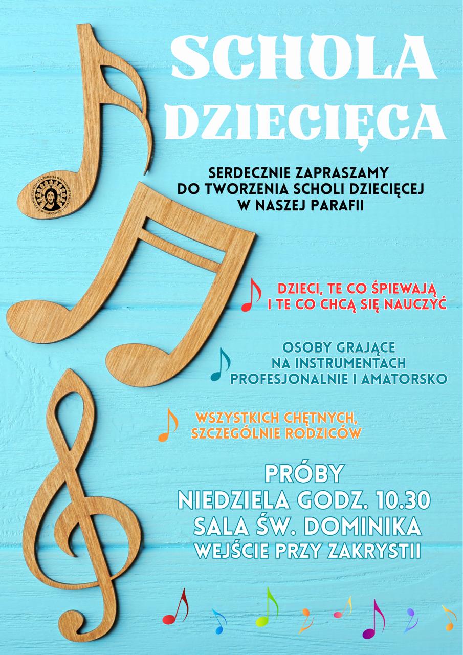 Zapraszamy wszystkich chętnych na próby scholi dziecięcej co niedziela na godz. 10:30 do sali św. Dominika !